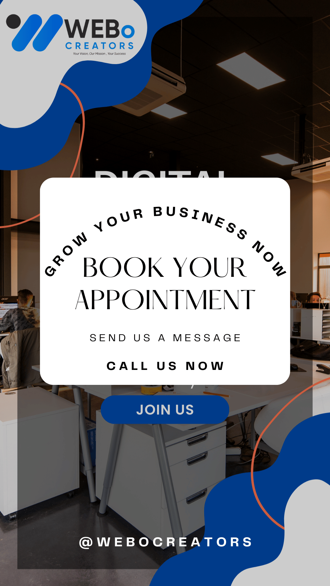 Unlock the potential of your online presence with Webocreators. We are here to transform your ideas into digital reality. Whether you need a stunning website, innovative app, or strategic digital marketing solutions, we've got you covered. At Webocreators, we believe in empowering businesses through creative and customized services. Ready to take the next step? Reach out for a free quote, and let's embark on a journey to elevate your brand in the digital landscape.